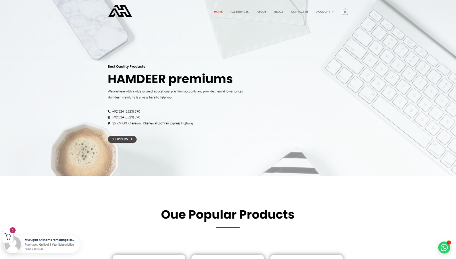 A store on which customer is selling some digital services, some premium accounts etc. The client is happy by using this site.